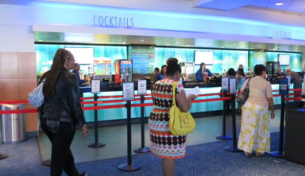Since we had time to spare (waiting for the main act), we decided to investigate if the bar was open. We knew this was a gospel concert; however, we figured that Jesus turned water into wine so he would be OK with us having a little libation at the concert. We also figured that Nokia Theatre was about making that booze money… And we were right! All the holy-rollers were in line at the bar and we joined them!